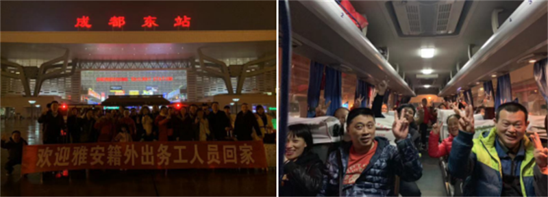 1月27日,简单热情地欢迎仪式结束后,蜀通公司大巴将35名粤务人员从成都东站送达雅安,顺利完成“无缝衔接”接驳运输任务。