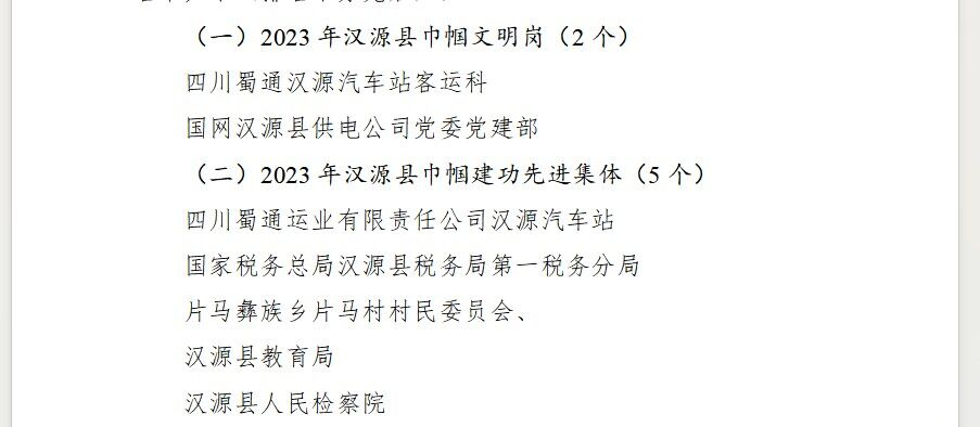 喜讯!亿万先生MR集团蜀通汉源汽车站获 “2023年汉源县巾帼建工先进集体