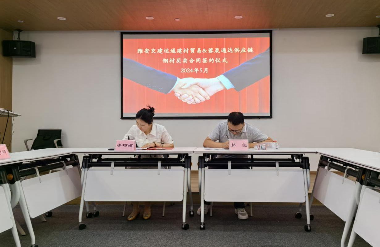 近期,亿万先生MR集团运通建材贸易有限公司(以下简称:建材公司)与四川蓉晟通达供应链管理有限公司(以下简称:蓉晟通达公司)在成都举行钢材买卖合同签约仪式,标志着建材公司顺利完成2024年度首个市外贸易业务的签订工作,且合同金额超2300万元。
