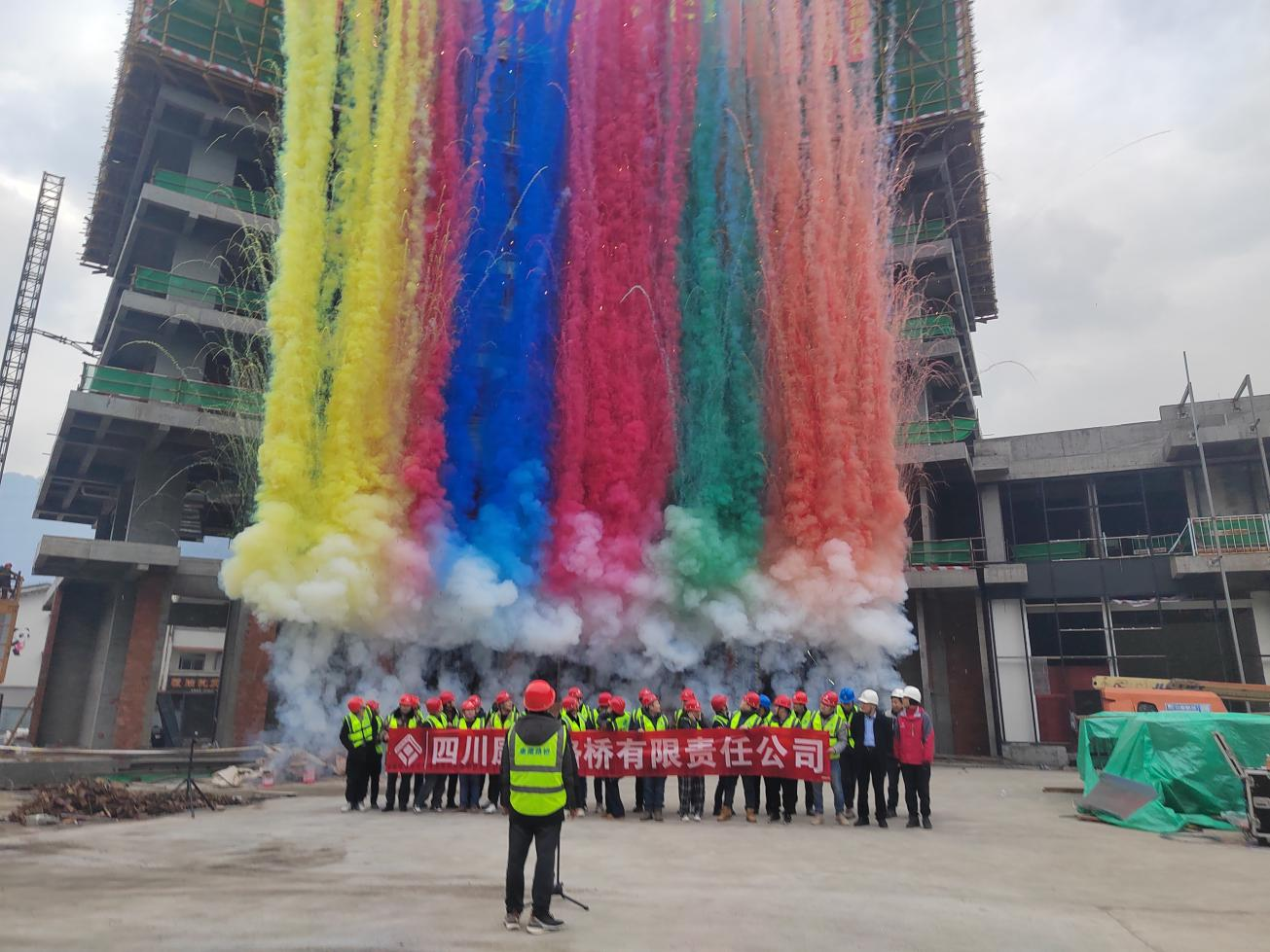 宝兴县灵关客运中心暨综合停车场建设项目建筑面积约为1万平方米,配套用房建筑高度约50米,地下1层,地上11层。自2024年3月开工以来,路桥公司始终坚持“施工方案先行,安全质量齐举,精心精细施工”的管理原则,践行“无扬尘、无污染、无扰民、低噪音、无环保投诉”的绿色安全施工理念,调集优质资源,抢抓施工进度。最终,在项目全员的共同努力奋斗下,顺利完成了宝兴县灵关客运中心暨综合停车场建设项目主体结构施工节点,喜封金顶。