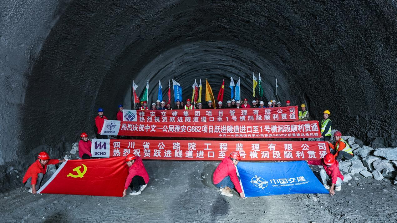 G662灾后重建项目跃进隧道1号、2号横洞先后顺利贯通,标志着该项目建设取得阶段性胜利。该隧道是G662灾后重建项目重要控制性工程,隧道全长6410米,位于震中核心区,施工条件极为严峻。自2024年11月27日正式进洞以来,项管公司多次邀请行业知名专家进行现场踏勘,问诊把脉,各参建单位迎难而上,持续创新工艺,专门创建不良地质处治专班,构建起以TSP法、地质雷达法、瞬变电磁法和超前钻探法为核心的综合超前地质预报体系,严格执行“先探后挖、不探不挖”原则,在确保安全质量的同时有效提升施工效率。隧道全线贯通后,石棉至泸定车程将缩短到1小时以内,有力促进区域“一小时生活圈”形成,显著提升路网抗震韧性、通行可靠性和沿线开展活力。
