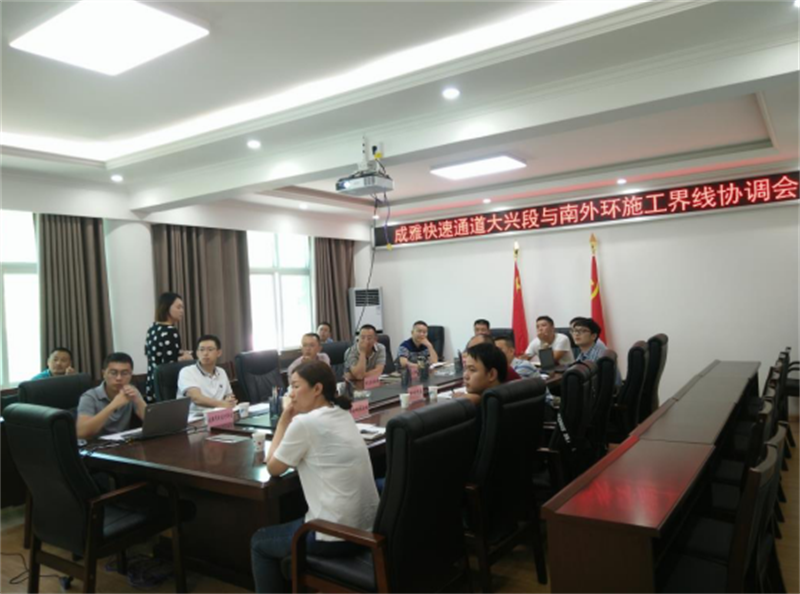 2018年6月20下午,市住建局、市交通局组织成雅快速通道新建项目和南外环建设项目两个项目业主单位 、设计单位、监理单位、施工单位在交建集团召开协调会,协商解决成雅快速通道大兴段与南外环设计方案对接问题。