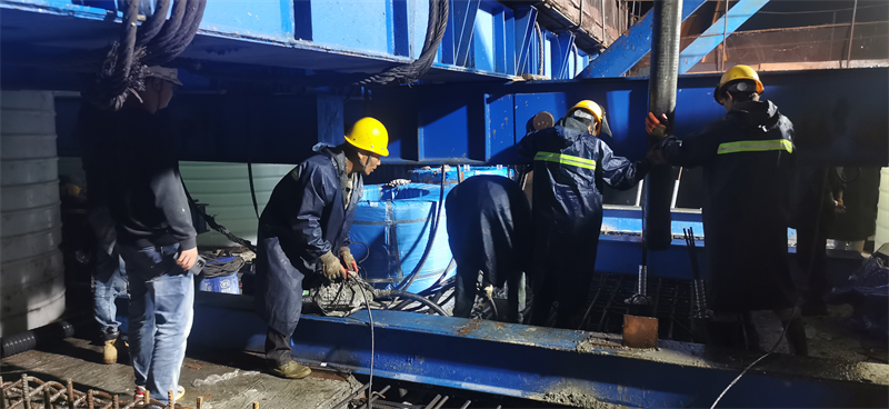 由于中跨合拢段施工要求高,我司于9月10日就开始右幅中跨合拢段钢筋制作工作。工地现场实测最高温47摄氏度,而混凝土须低于30摄氏度浇筑才能确保质量。为此,项目部将一线施工作业时间进行了调整,避开了10:00至16:30的高温时段,选在温度偏低的夜间进行施工。项目部人员全力以赴与时间赛跑,与天气斗争,于9月17日23点开始进行混凝土浇筑,经过彻夜奋战于凌晨2点30分完成合拢段全部施工,有效保证了合拢段施工质量。