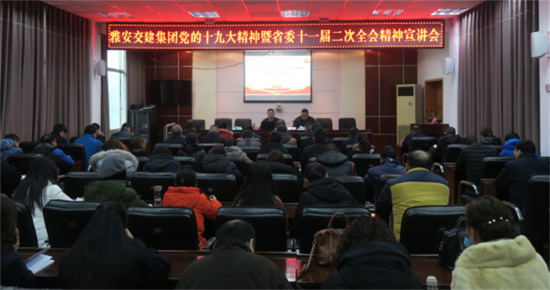1月5日下午,市交建集团举行专题宣讲会,集中学习党的十九大暨省委十一届二次全会精神。会议邀请雅安市委党校副校长杨国先同志作专题辅导,集团公司党委书记、董事长漆家华主持辅导会并讲话,交建集团全体党员、经营班子成员、中层干部参加学习。