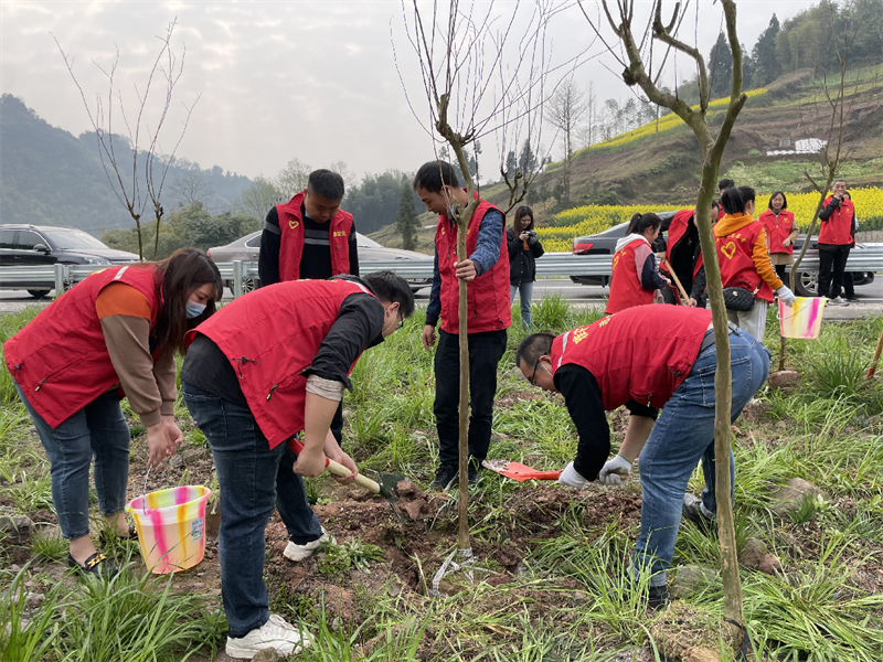 在我国第44个植树节来临之际,大兴公司团支部召开以“我参与、我奉献、我收获”为主题的植树活动,为成雅快速通道(雅安段)新建项目三标段添上一片新绿。