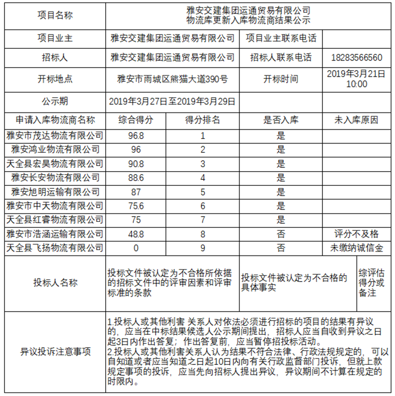 雅安市交通建设(集团)有限责任公司大型户外广告企业入库比选结果