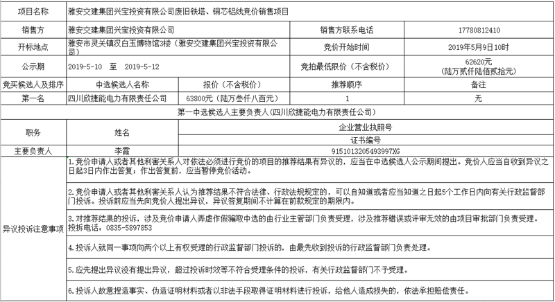 亿万先生MR集团兴宝投资有限公司废旧铁塔、铜芯铝线竞价销售项目公示