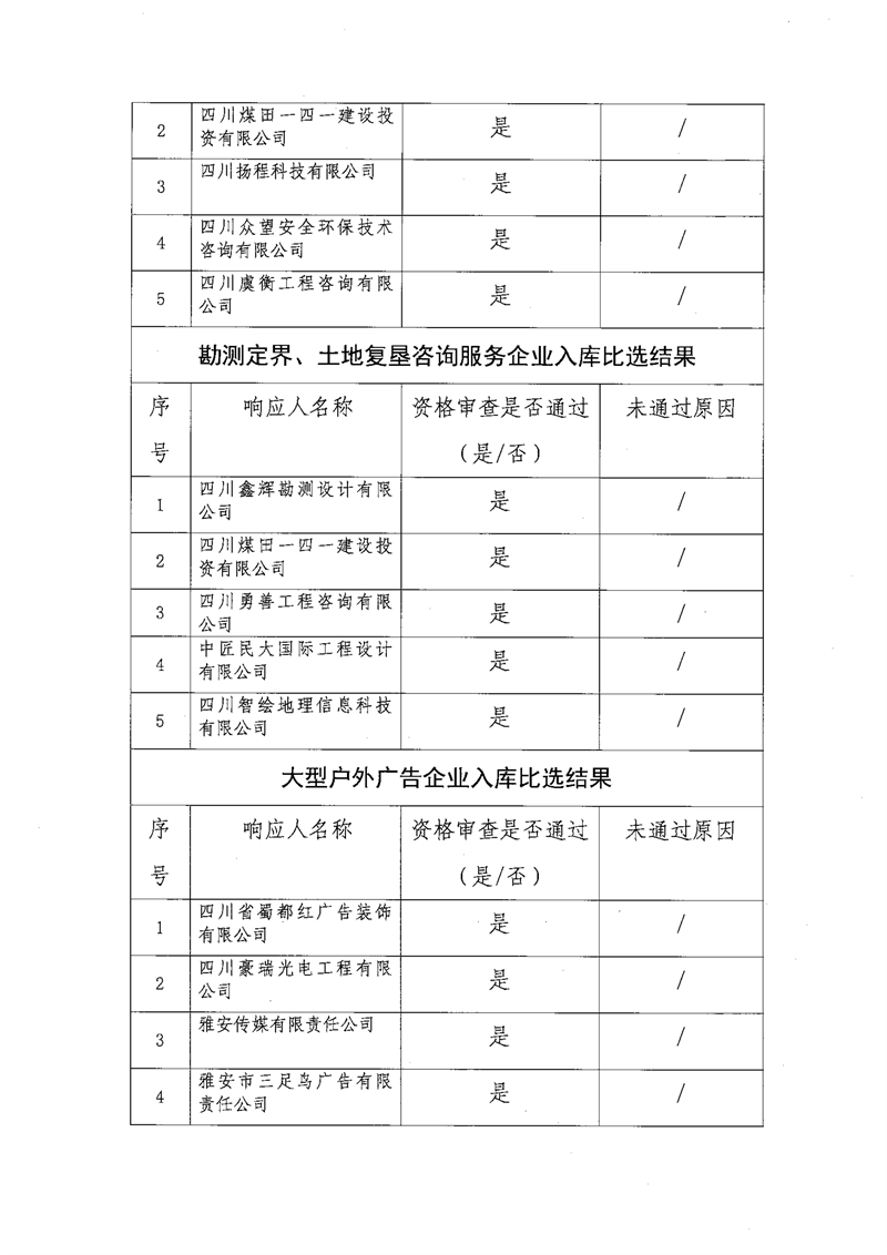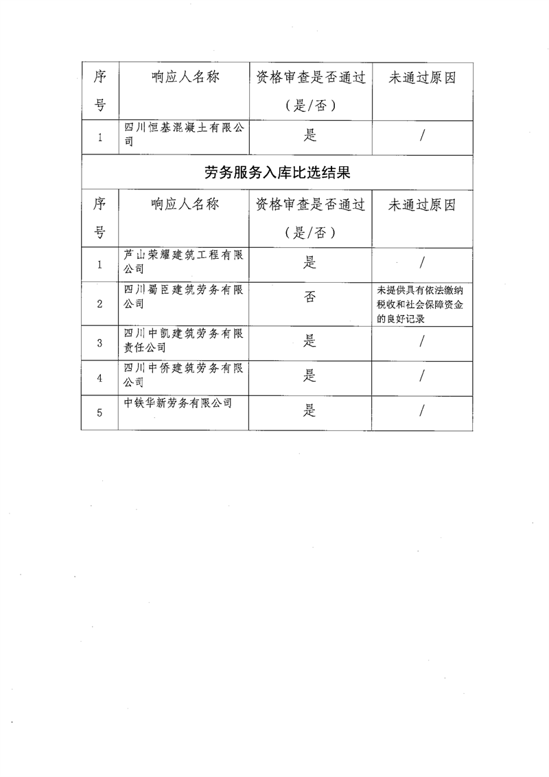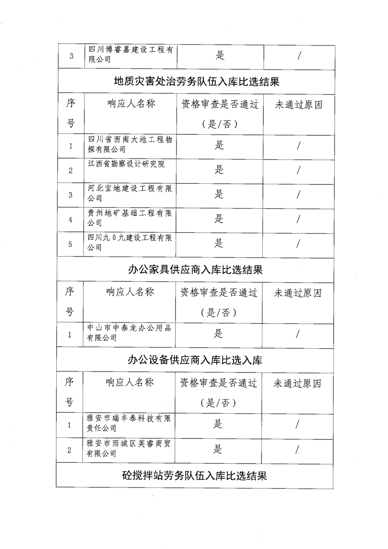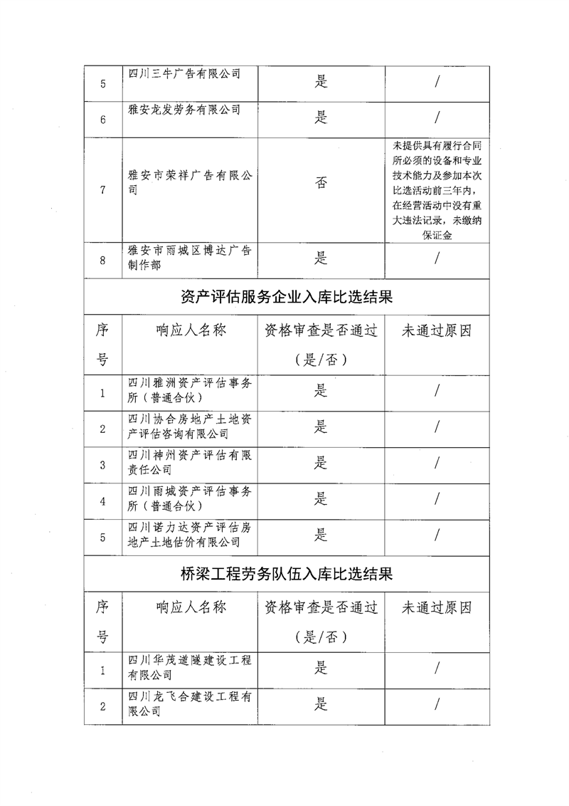 雅安交通建设(集团)有限责任公司比选入库补录结果公示