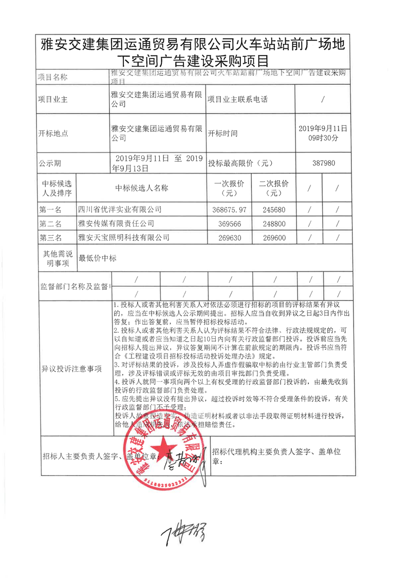 亿万先生MR集团运通贸易有限公司火车站站前广场地下空间广告建设采购项目结果公示