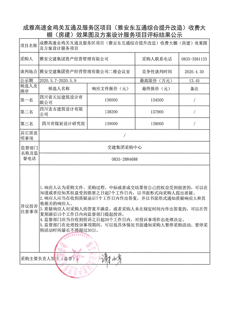 亿万先生MR集团大兴交通开发有限公司雅安大兴南综合交通枢纽(TOD)项目临建及场地平整工程项目评标结果公示