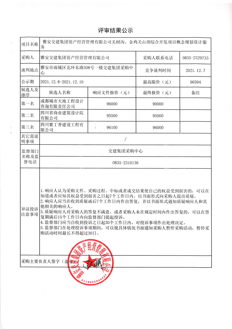 亿万先生MR集团资产经营管理有限公司关材沟、金鸡关山顶综合开发项目概念规划设计服务评审结果公示