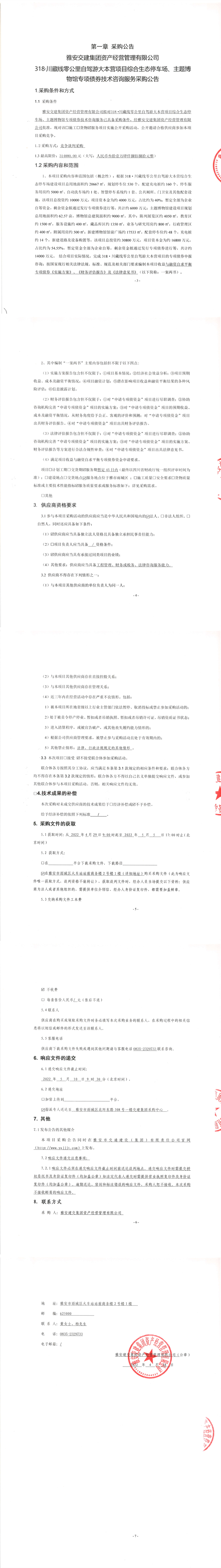 亿万先生MR集团资产经营管理有限公司318.川藏线零公里自驾游大本营项目综合生态停车场、主题博物馆专项债券技术咨询服务采购公告