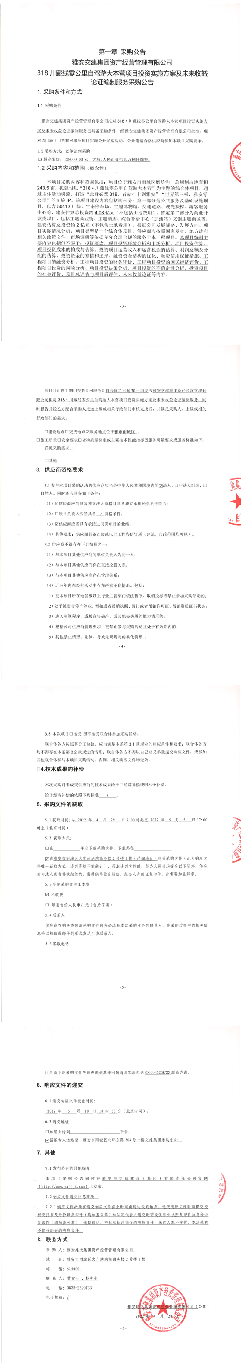 亿万先生MR集团资产经营管理有限公司318·川藏线零公里自驾游大本营项目投资实施方案及未来收益论证编制服务采购公告