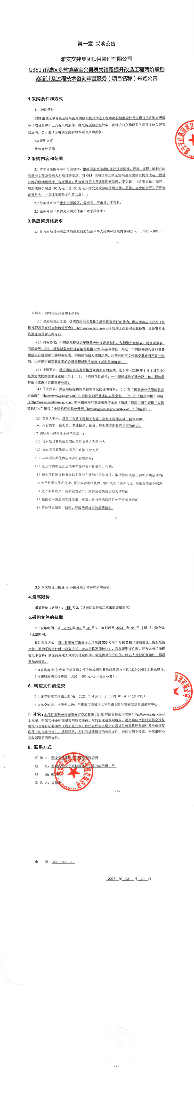 亿万先生MR集团项目管理有限公司G351雨城区多营镇至宝兴县灵关镇段提升改造工程两阶段勘察设计及过程技术咨询审查服务(项目名称)采购公告