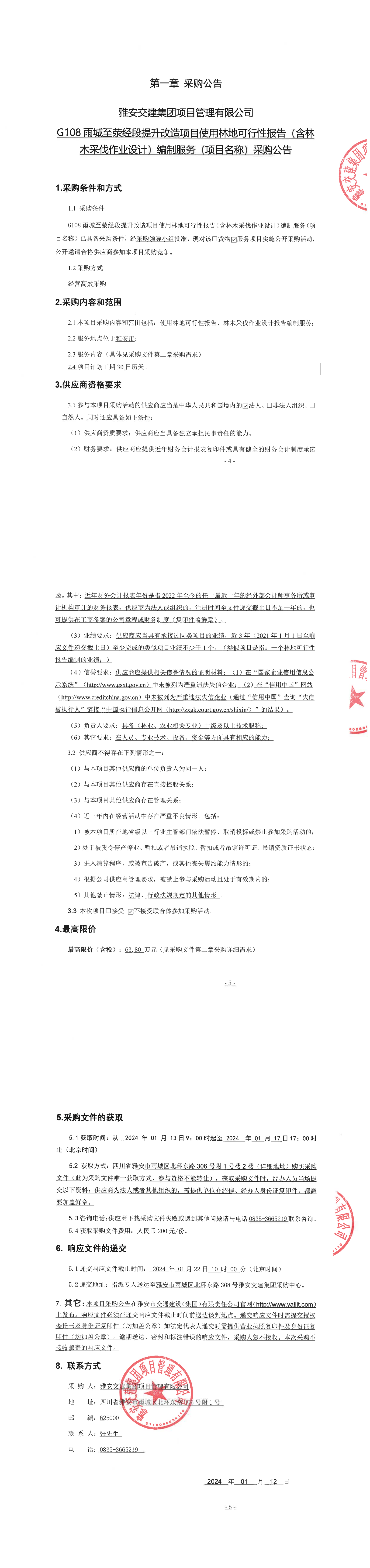 亿万先生MR集团项目管理有限公司G108雨城至荥经段提升改造项目使用林地可行性报告(含林木采伐作业设计)编制服务(项目名称)采购公告