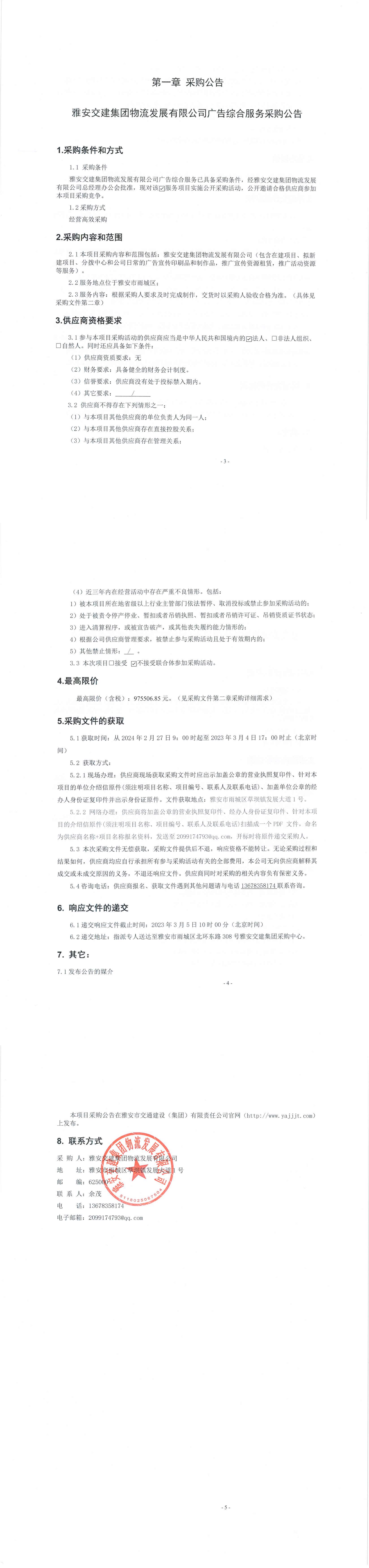 亿万先生MR集团物流开展有限公司广告综合服务采购公告