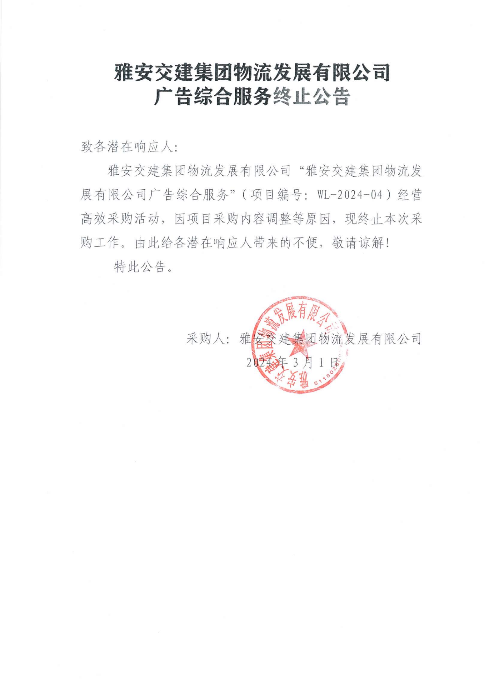 亿万先生MR集团物流开展有限公司广告综合服务终止公告