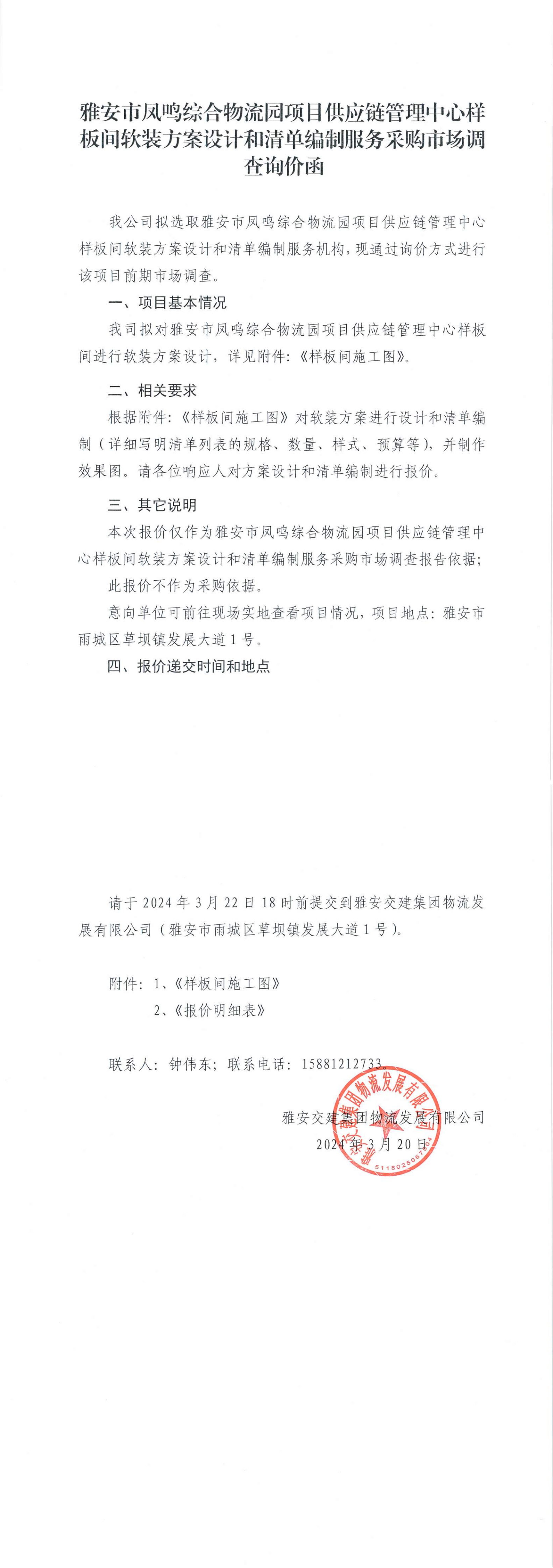 亿万先生MR集团物流开展有限公司雅安市凤鸣综合物流园项目供应链管理中心样板间软装方案设计和清单编制服务采购市场调查询价函