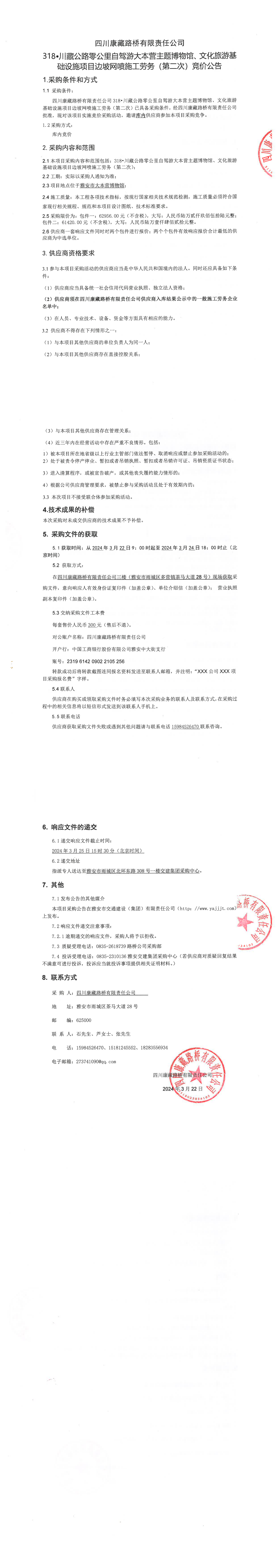四川康藏路桥有限责任公司318·川藏公路零公里自驾游大本营主题博物馆、文化旅游基础设施项目边坡网喷施工劳务流标通知