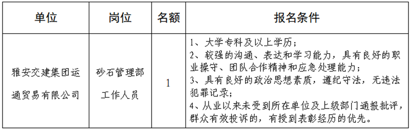 根据开展需要,决定面向社会公开招聘雅安市交通建设(集团)有限责任公司(以下简称“亿万先生MR集团”)所属子公司工作人员1名,现将有关事项公告如下: