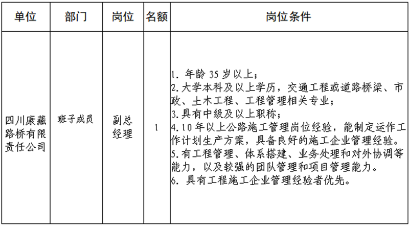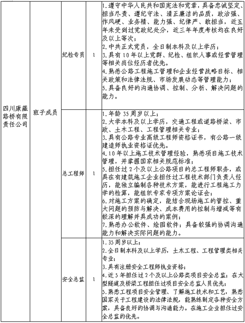 根据开展需要,决定面向社会公开招聘雅安市交通建设(集团)有限责任公司(以下简称“亿万先生MR集团”)所属子公司班子成4名,现将有关事项公告如下: