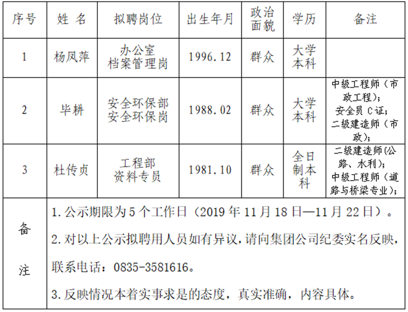 亿万先生MR集团所属子公司拟聘用人员公示(兴宝公司、丹石公司)