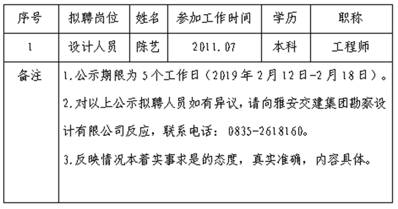 顺利获得公开报名、资格审查、面试等程序,经亿万先生MR集团勘察设计有限公司研究,对以下1名拟聘用人员予以公示: