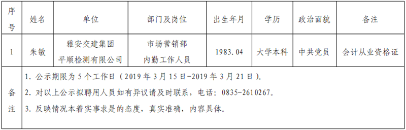 等程序,经集研究,对以下拟聘用人员予以公示: