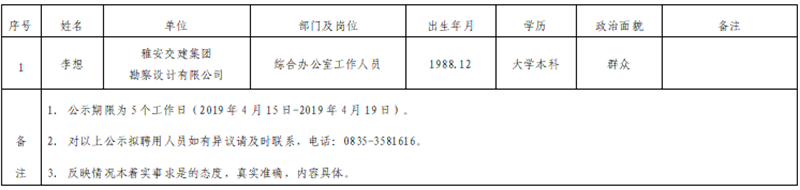 根据集团公司《人才选聘实施办法》,经研究,对以下拟聘用人员予以公示: