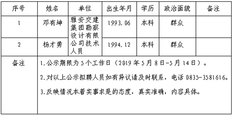 根据集团公司《人才选聘实施办法》,经研究,对以下拟聘用人员予以公示: