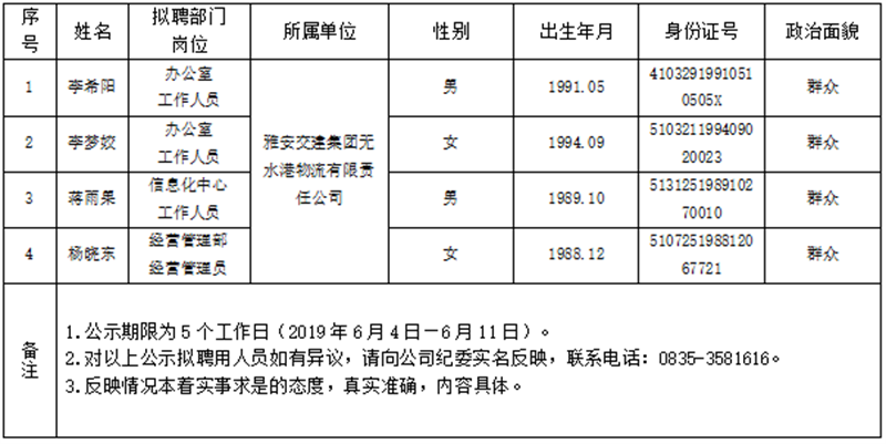 对以下拟聘用人员予以公示:
