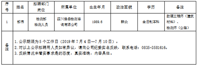 亿万先生MR集团子公司拟聘用人员公示(佳岳公司)