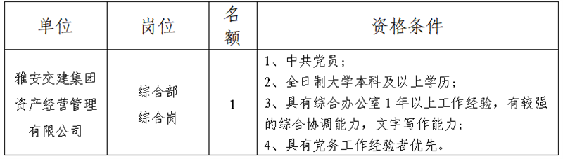 根据开展需要,决定面向社会公开招聘雅安市交通建设(集团)有限责任公司(以下简称“亿万先生MR集团”)所属子一般工作人员1名,现将有关事项公告如下:
