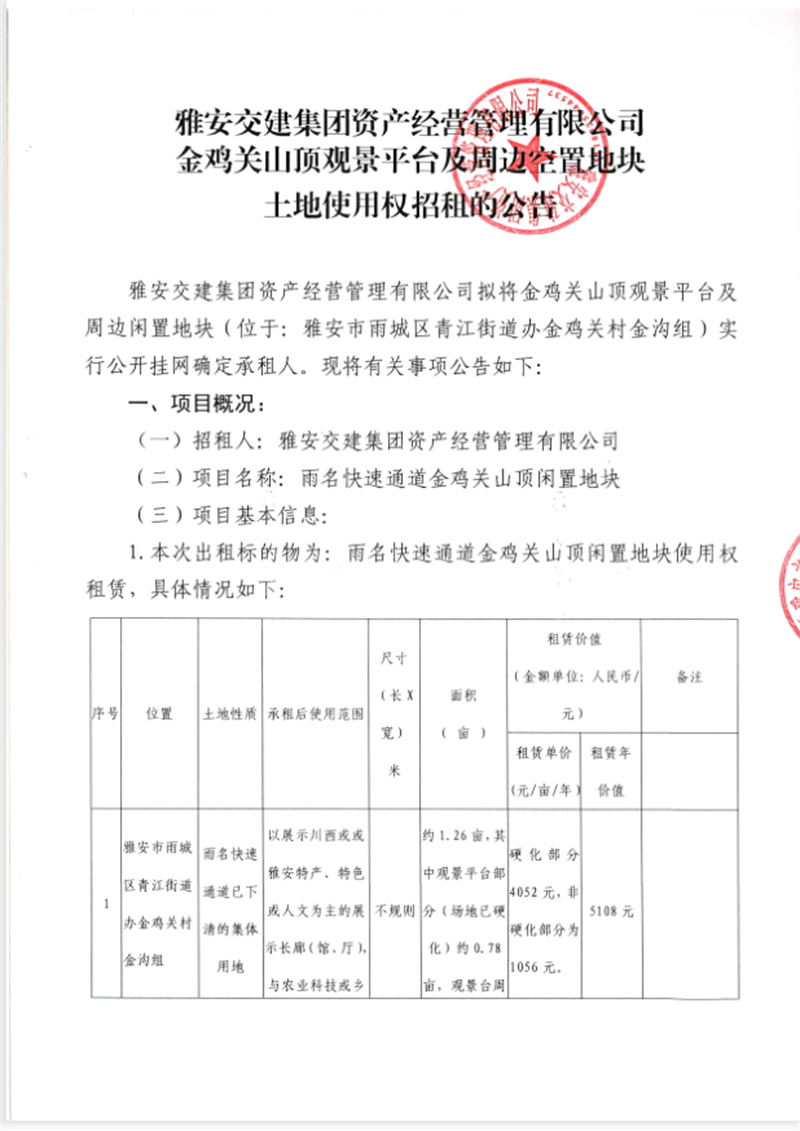 金鸡关山顶观景平台竞价招租公告