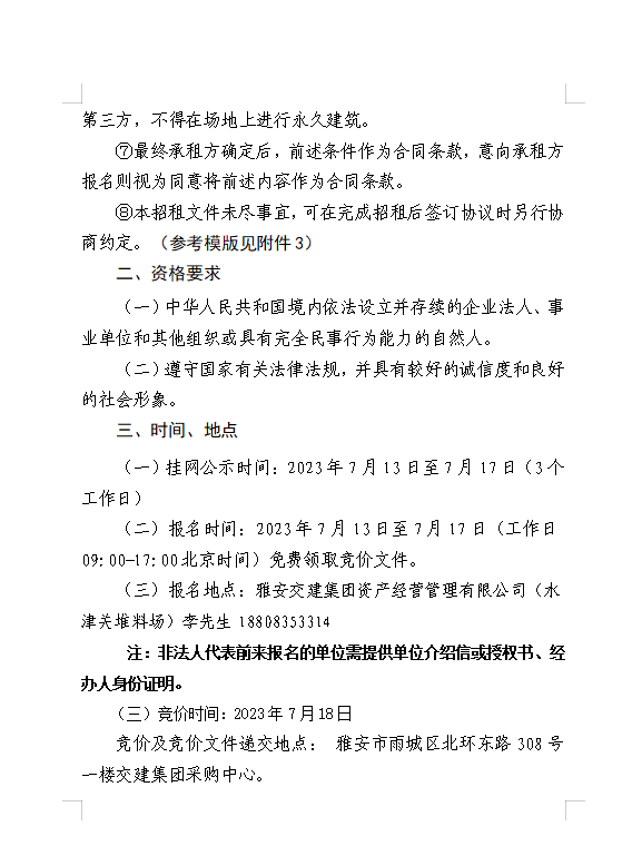 亿万先生MR集团资产经营管理有限公司 雅安市雨城区大兴镇水津关堆料场龙溪村四组和八组部分闲置临时用地招租公告附件