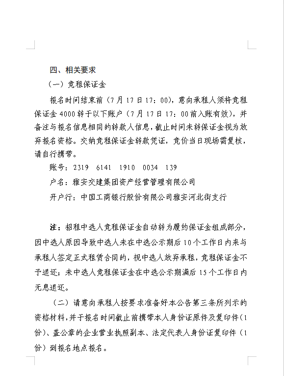 亿万先生MR集团交通资源开发有限责任公司关于雅安市雨城区姚桥21-01、水中坝安置房西侧地块招租的公告
