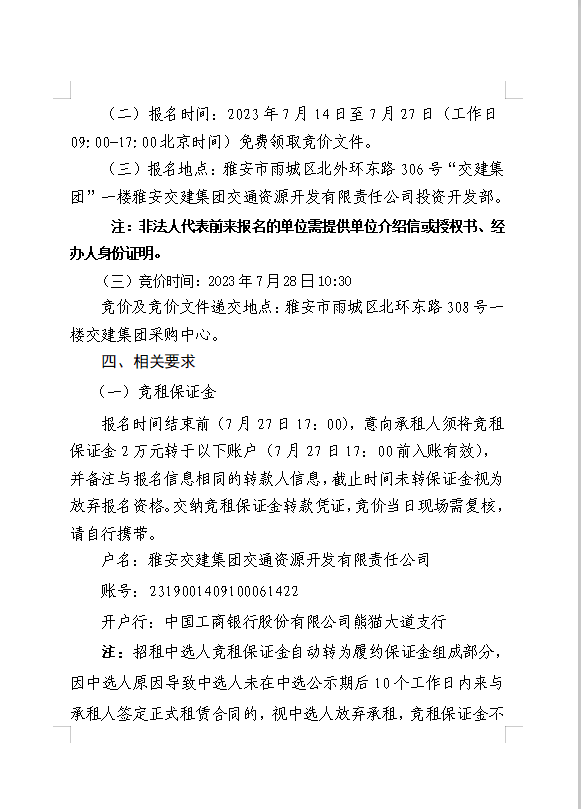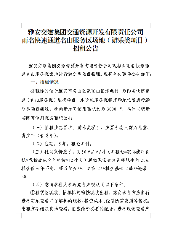亿万先生MR集团交通资源开发有限责任公司雨名快速通道名山服务区场地(游乐类项目)招租公告附件