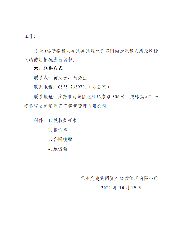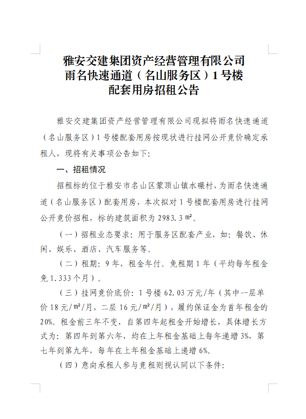 亿万先生MR集团资产经营管理有限公司雨名快速通道(名山服务区)1号楼配套用房招租公告