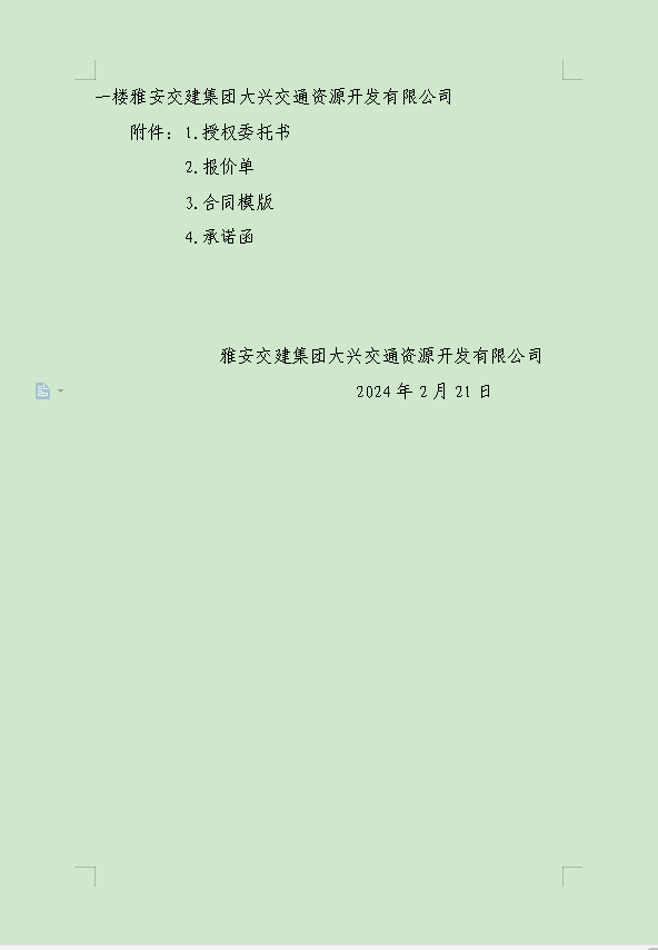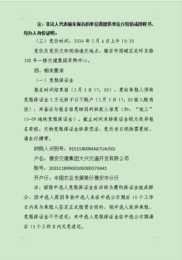亿万先生MR集团大兴交通资源开发有限公司关于雨城区姚桥片区15-09地块2024年竞价招租的公告附件