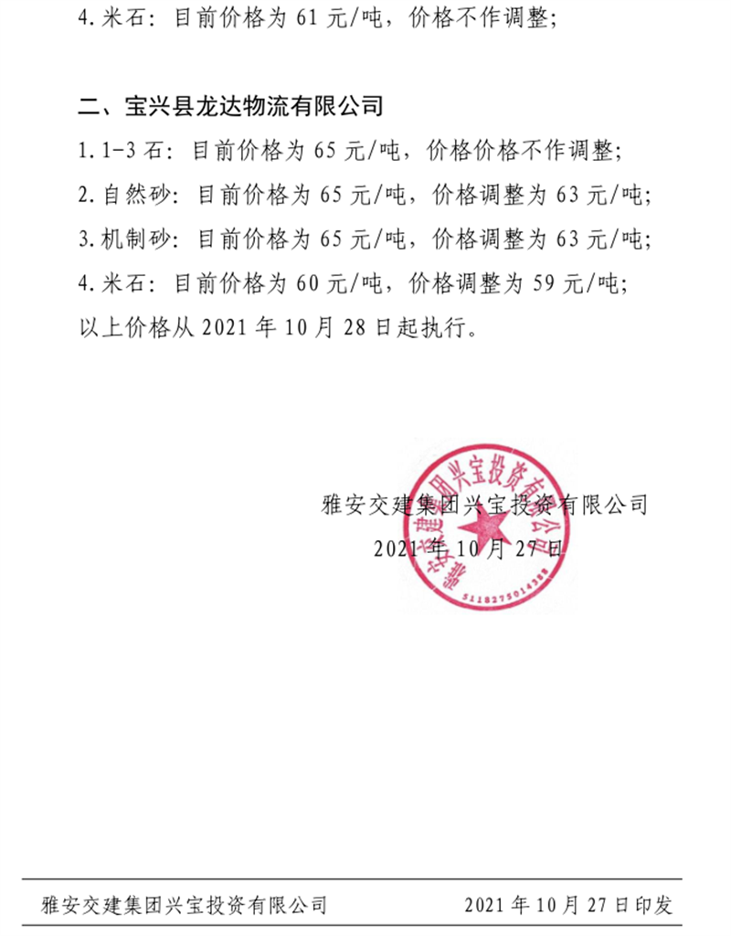 亿万先生MR集团兴宝公司关于调整成品料销售价格的通知(2021.10.28)