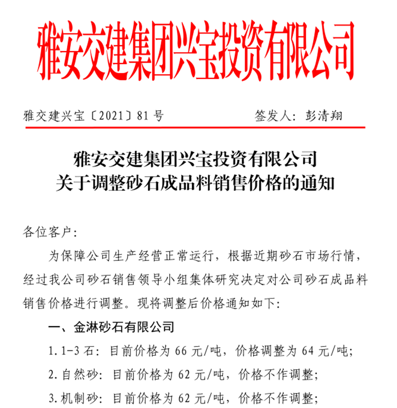 亿万先生MR集团云石公司关于调整成品料销售价格的通知(2021.11.4)