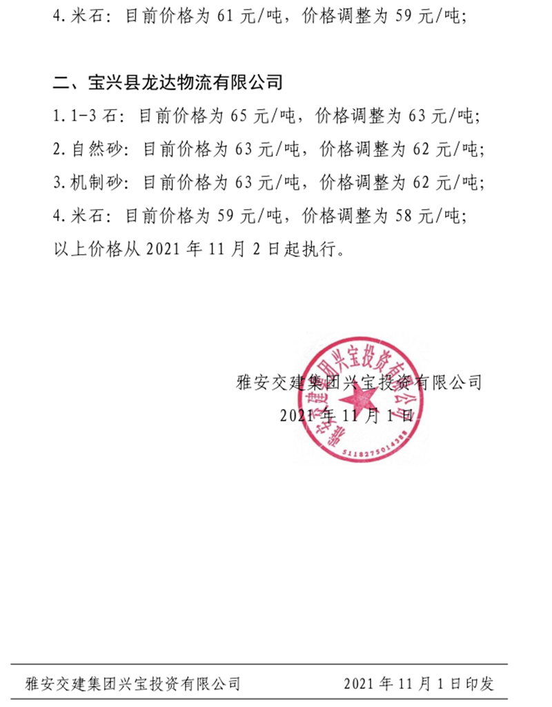 亿万先生MR集团兴宝公司关于调整成品料销售价格的通知(2021.11.2)