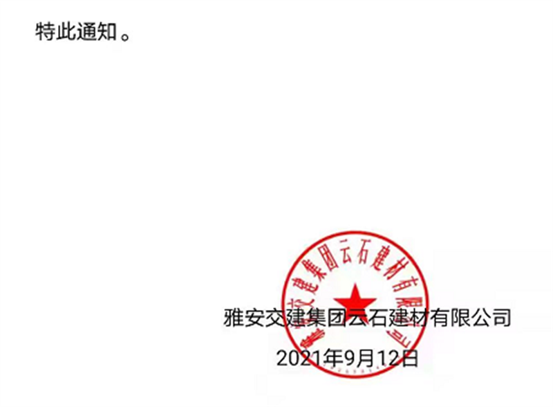 亿万先生MR集团云石公司关于调整成品料销售价格的通知(2021.9.13)
