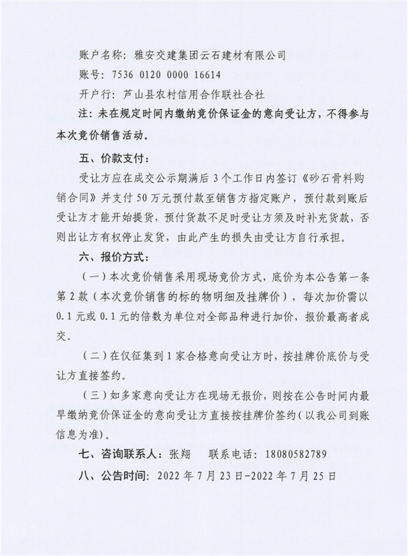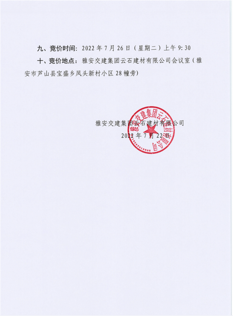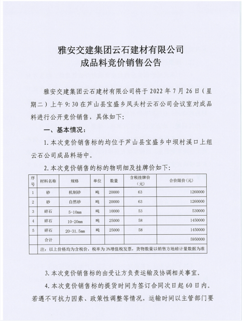亿万先生MR集团兴宝投资有限公司宝兴县灵关镇代碑寺土地整理项目100万吨可利用弃渣竞价销售公告(2022.7.25)